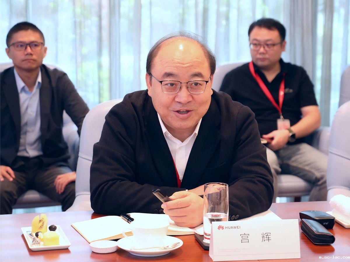 会前,宫辉书记率队参观了华为企业业务展厅,深入了解了城市智慧运行中心、智慧政务、智慧应急、智慧交通等板块内容,并对华为的整体运营、研发投入与智能化战略有了系统认知。