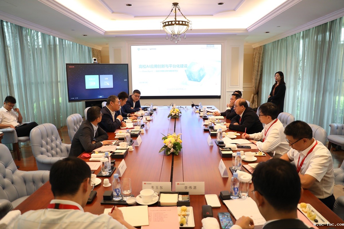 在专题汇报环节,中关村科金解决方案专家陈松围绕“高校AI应用创新与平台化建设”作主题分享,重点介绍了大模型平台在教育场景的落地实践。华为公共事业军团解决方案专家乔明则以“携手老伟德网上娱乐,建设成长型有特色高水平大学”为题,系统阐述了合作愿景与推进思路。