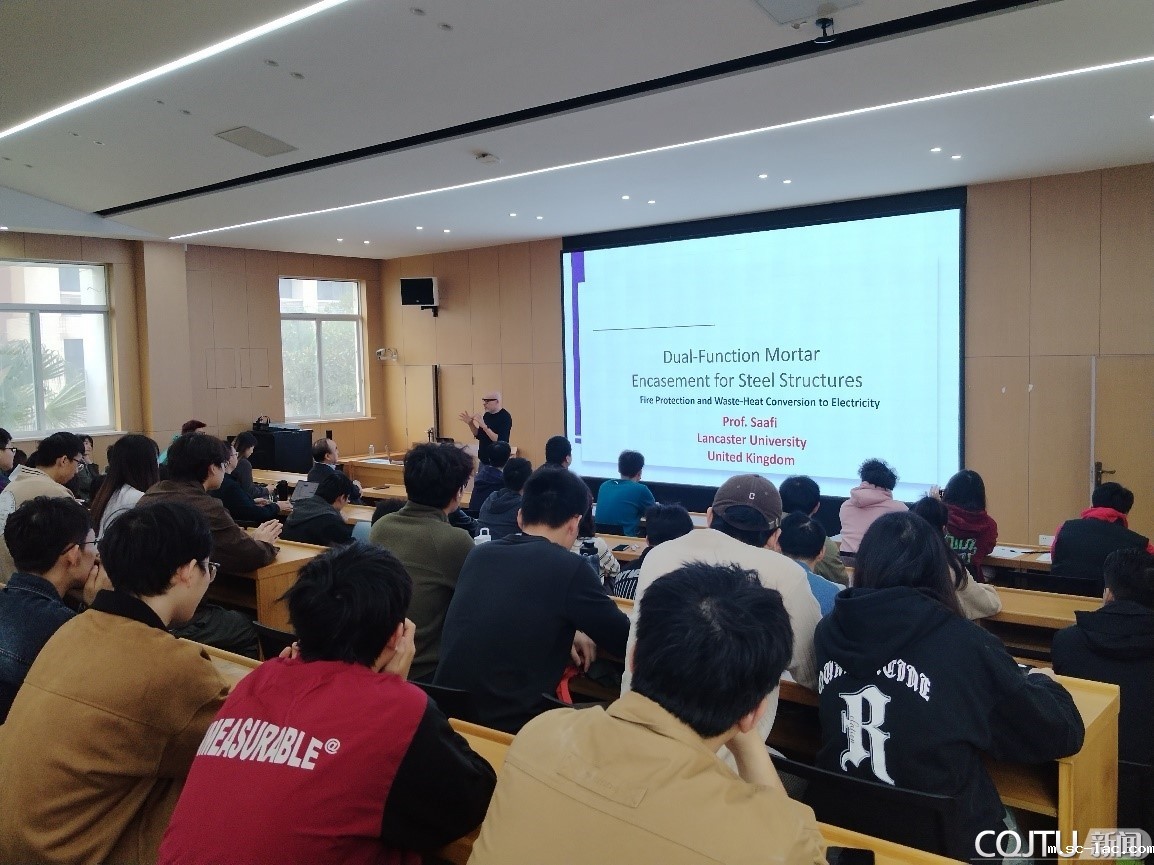 萨菲教授在校期间还为我校师生作了题为《Dual-Function Mortar Encasement for Steel Structures: Fire Protection and Waste-Heat Conversion to Electricity》的专题学术报告,来自土木工程学院、材料科学与工程学院200余名师生聆听了报告。萨菲教授在报告中重点介绍了一种具有双重功能的创新型砂浆封装技术,并与与会师生围绕材料选择、工艺优化、工程应用等关键技术问题进行了深入探讨交流。国家高等学校学科创新引智基地、国际基础设施工程研究中心(ICI)主任肖勇教授表示,此次报告展现了国际前沿成果、启发了跨学科思维,为绿色建筑的研发应用提供了创新思路和重要技术路径,将推动学校智能建造与可持续能源领域的国际科研合作。