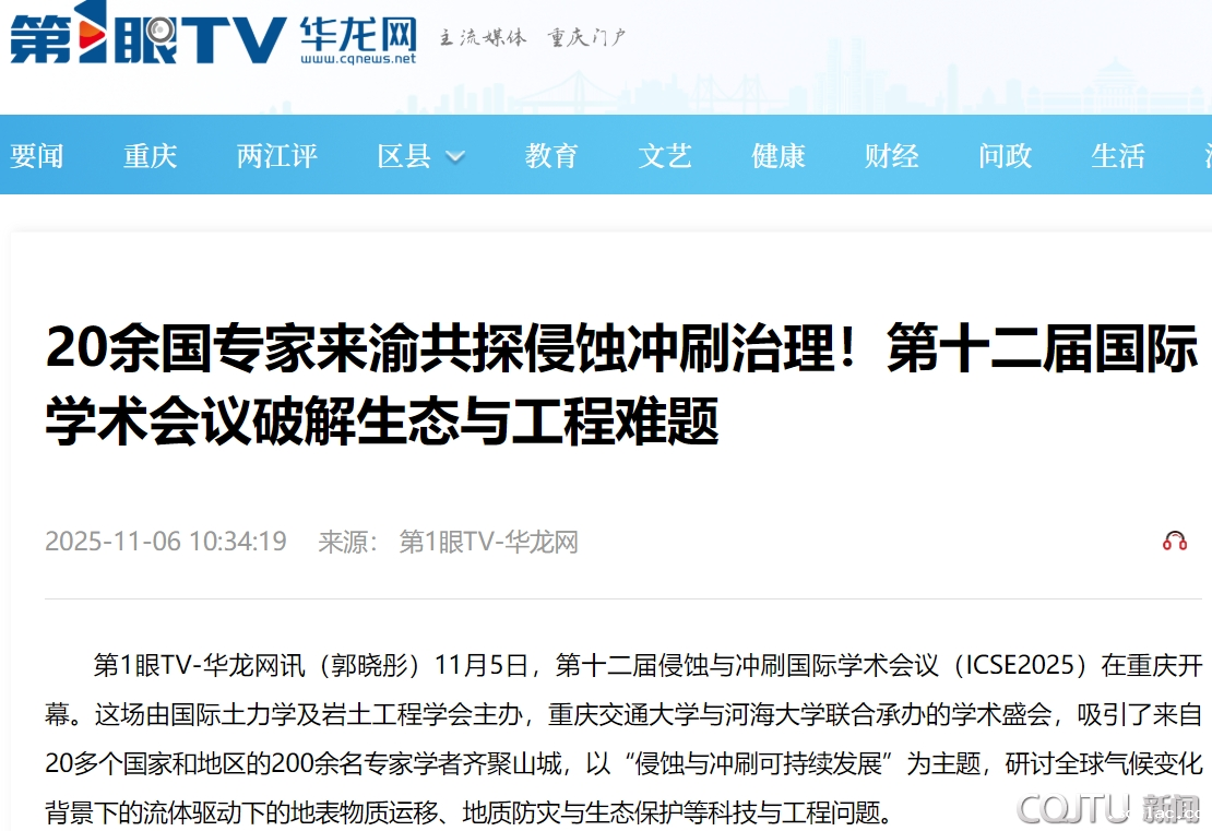 重庆日报:第十二届侵蚀与冲刷国际学术会议在渝举行