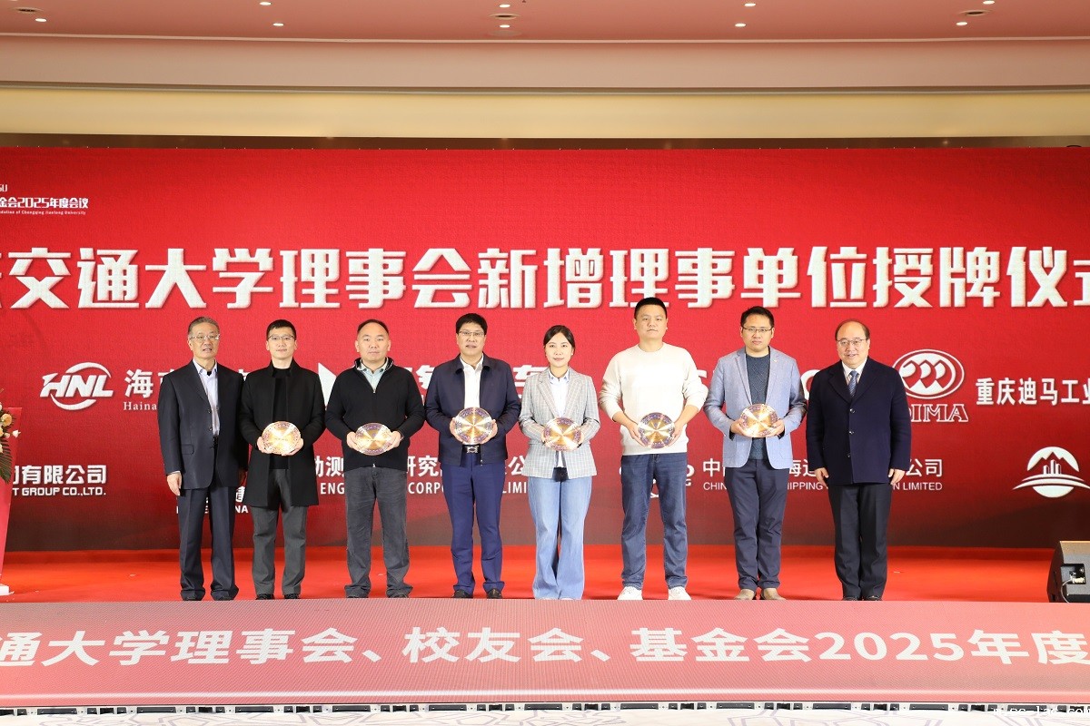 2025年,在全体理事、校友及合作单位的鼎力支持下,新一届理事会以“服务学校发展、凝聚社会力量、助力产学融合”为使命,砥砺前行、笃行致远,围绕重大工程、重大项目、未来交通等领域,开展调研交流,深化创新合作,持续拓展产学研合作层级,取得丰硕成果。为进一步扩大理事会“智囊团”队伍,邀请海南物流集团有限公司等9家合作单位为新增理事单位。老伟德网上娱乐党委书记、理事会理事长宫辉,理事会原理事长、国家铁路局原党组成员、中国交通运输协会副会长钟华为海南物流集团、圭目机器人有限公司、中国远洋海运、中国电建成都勘测设计院、深圳城市交通规划设计研究中心、广西北投、西藏建工建材集团、江西交通科学研究院、庆铃集团、重庆迪马工业的新增理事单位代表颁发聘书。