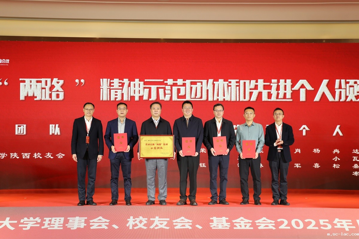 重庆交大人是“两路”精神的孕育者、传承者和实践者,“两路”精神已融入交大人的血脉,成为一代代交大人团结拼搏的精神旗帜!陕西校友会和杨龙清等10位校友分别被授予学校传承弘扬“两路”精神示范团体和先进个人荣誉称号。党委常委、宣传部部长叶勇,党委常委、党政办主任杨既福为获奖团体代表陕西校友会会长孙洪利,先进个人代表杨龙清、周长刚、杨喜、董庆颁奖。