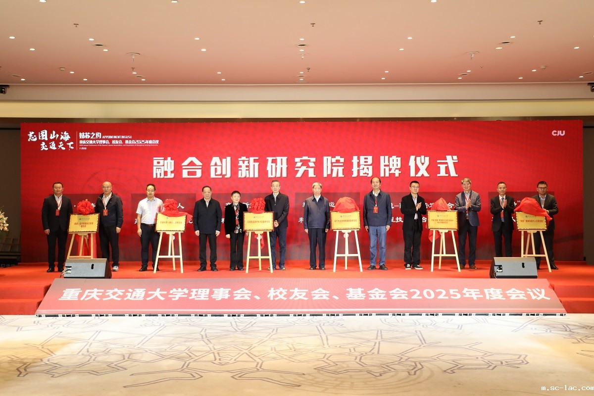 学校积极面向未来交通前沿技术发展和新交通技术需求,锚定“区别传统原始创新、提前切入未来布局、介入未来交通场景、迅速培育新兴方向”的建设目标,以提前布局未来交通领域科技创新为目标,以突破学科交叉为抓手,筹建成立现代水利水运、交通新能源材料与装备、交通机器人、“两路”精神与现代人文、通道经济产业、轨道隧道管道综合交通工程等六大融合创新研究院,进一步完善了学校服务未来交通领域的创新平台布局。国家发改委农经司原司长吴晓,交通运输部原总工程师兼水运局局长李天碧,理事会副理事长、校友会副会长、基金会副理事长、中国华西工程设计建设有限公司董事长周华,理事会副理事长、重庆市交通委员会原主任乔墩,理事会副理事长、广西交投集团原董事长周文,理事会副理事长、福建省交通运输厅原党组成员、总工程师寇军共同为学校融合创新研究院揭牌。这不仅标志着学校在未来交通前沿领域的战略布局迈出关键一步,更彰显了我们以学科交叉融合培育创新动能、以产学研协同赋能产业发展的坚定决心。