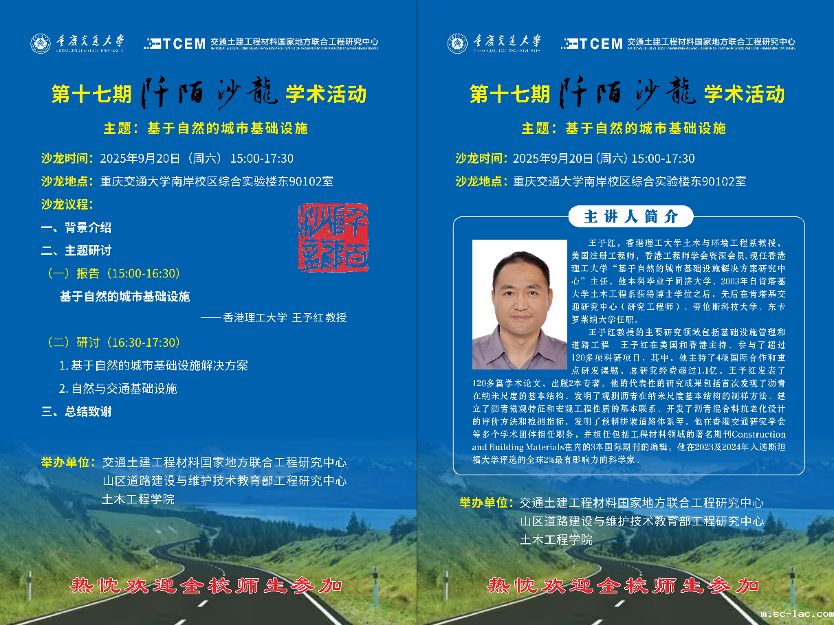 日期:2025年09月19日 15:55 作者:交通土建工程材料国家地方联合工程研究中心 来源:交通土建工程材料国家地方联合工程研究中心 点击率:
