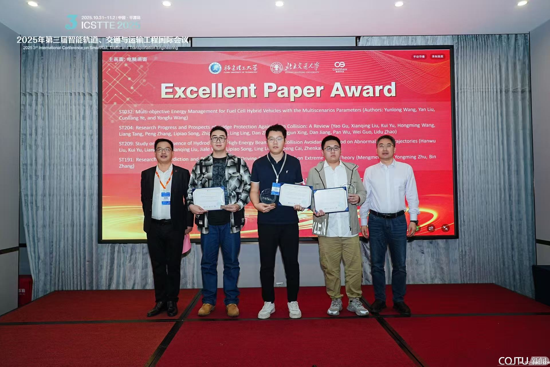 此次国际会议为我校研究生提供了宝贵的“沉浸式实践课堂”,学生通过论文汇报及前沿交流拓宽视野和提升创新能力。同时,我校在智能轨道交通、水运安全、多式联运等领域的研究成果获得国内外同行认可,既提升了学术影响力与国际知名度,又加强了与兄弟院校及相关企业的产学研用深度融合,共同解答“交通强国“的时代命题。
