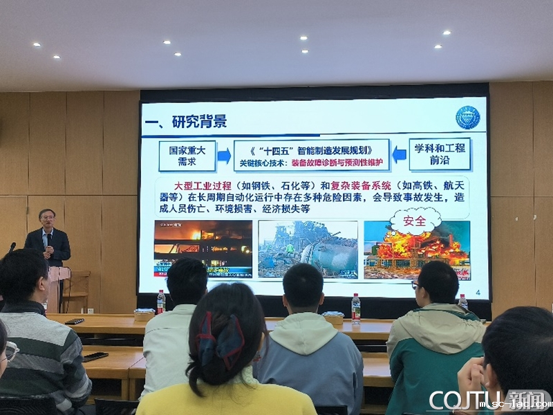 11月6日下午,重庆大学自动化学院柴毅教授应邀来校作题为《数据驱动的复杂过程故障诊断及安全性评估》的学术报告。报告会由信息科学与工程学院赵玲教授主持,学校80余名师生到场聆听,并就相关技术问题与柴教授进行了深入交流。