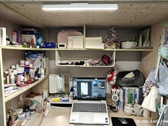 热爱生活风 有序悬挂的包包和玩偶,无不体现旅传学子对生活的热爱,摆放整齐的生活用品更展现了对待生活的积极态度。